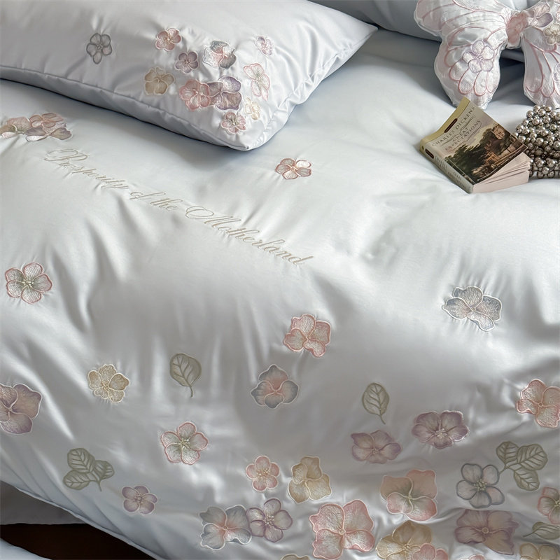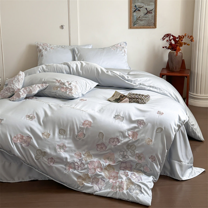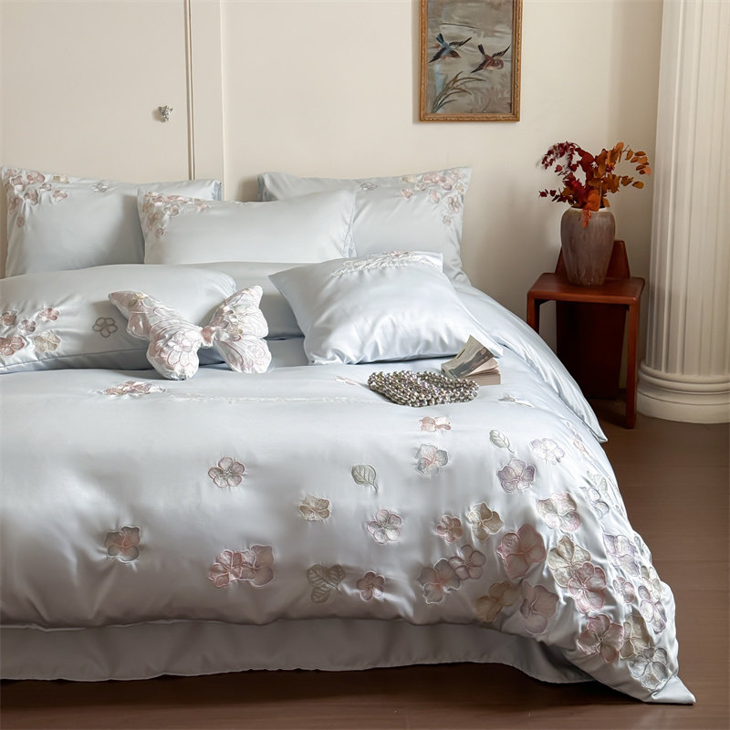 寒念水洗天丝刺绣四件套蝴蝶飞飞凉感公主风轻奢套件被套床单床品