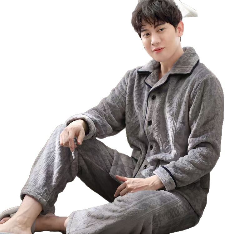 睡衣男士秋冬款冬季珊瑚绒加厚加绒保暖法兰绒家居服男款男式套装