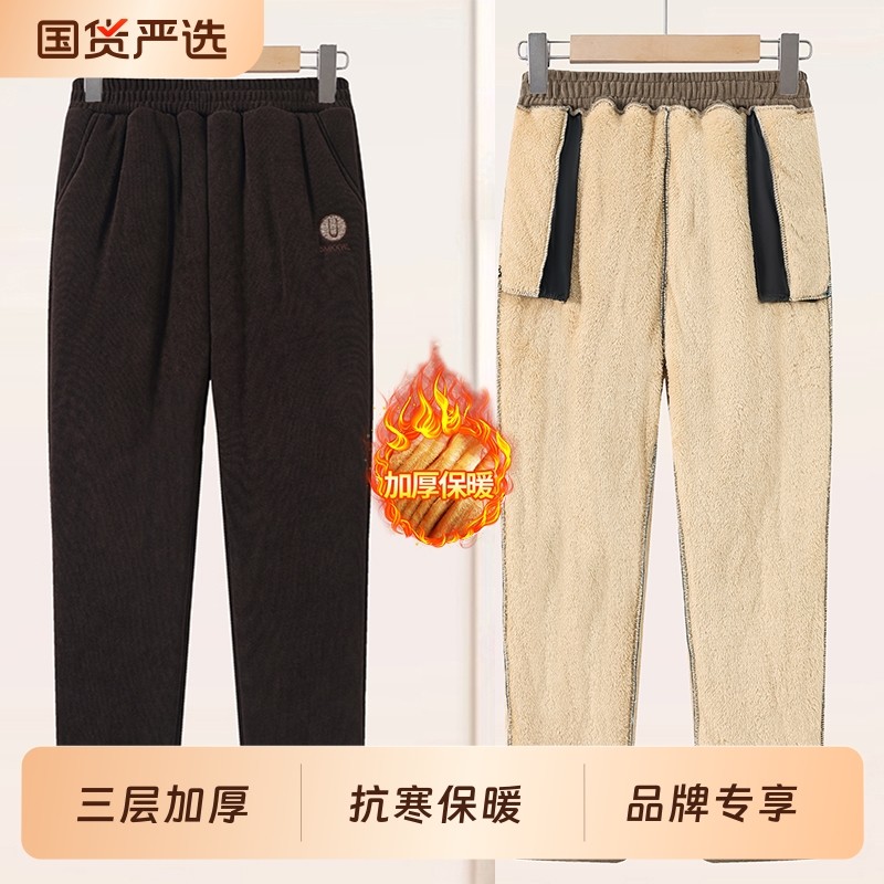妈妈秋冬季羊羔绒外穿棉裤中老年人加绒加厚灯芯绒保暖裤子女三层