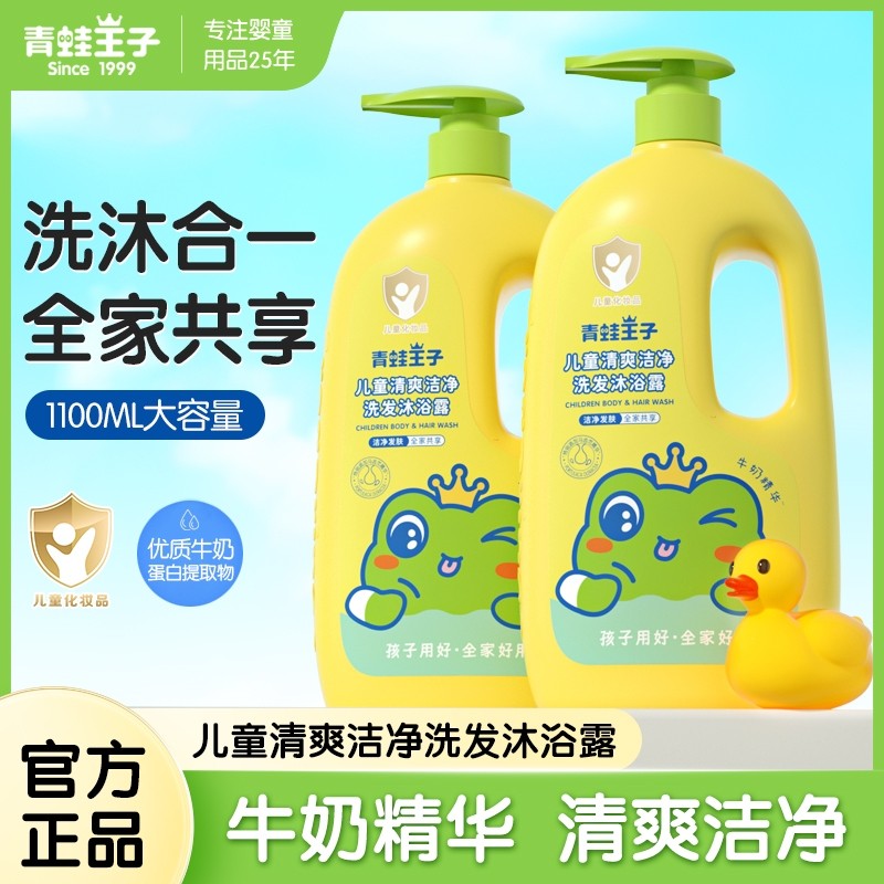 青蛙王子沐浴露儿童洗发水二合一小学生专用洗护牛奶精华保湿婴童