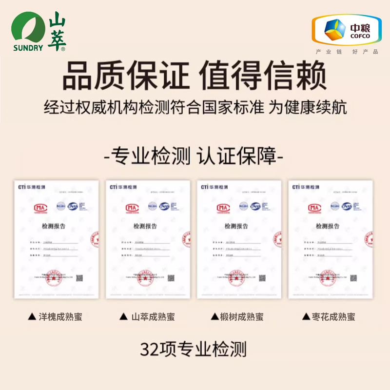 中粮山萃真蜂蜜百花多源蜜2斤纯正天然冲饮冲调无添加挤压瓶1000g