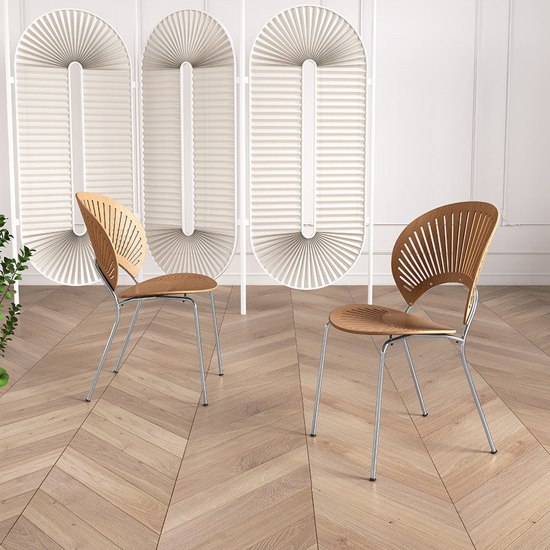 轻奢侘寂风餐椅皮软包设计师现代弯曲木咖啡厅实木椅子家用书房椅
