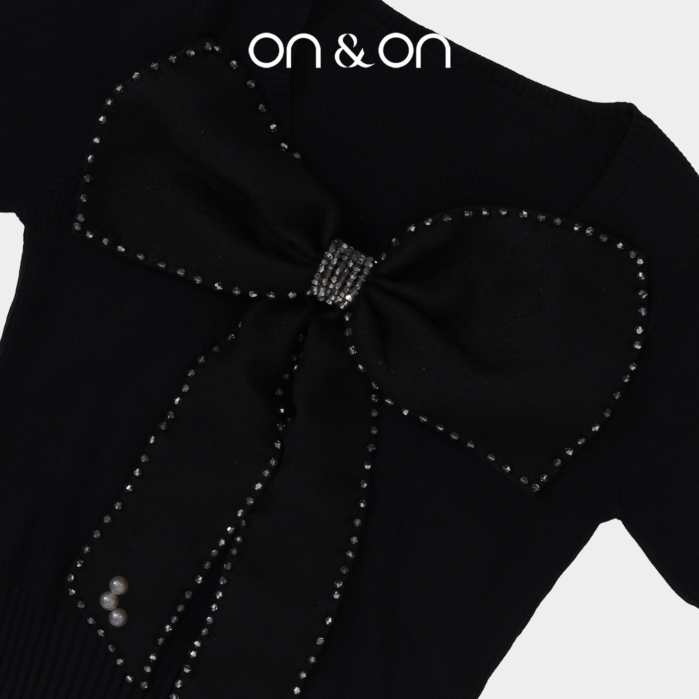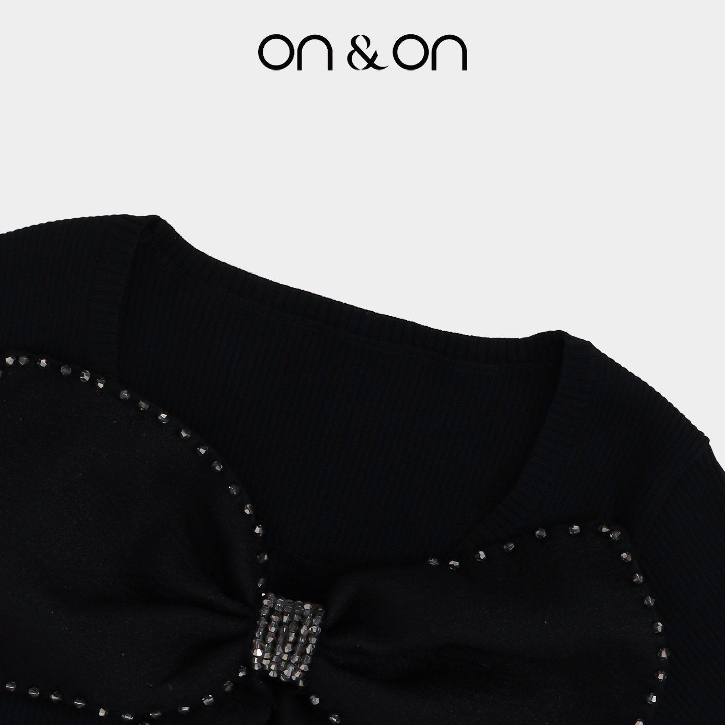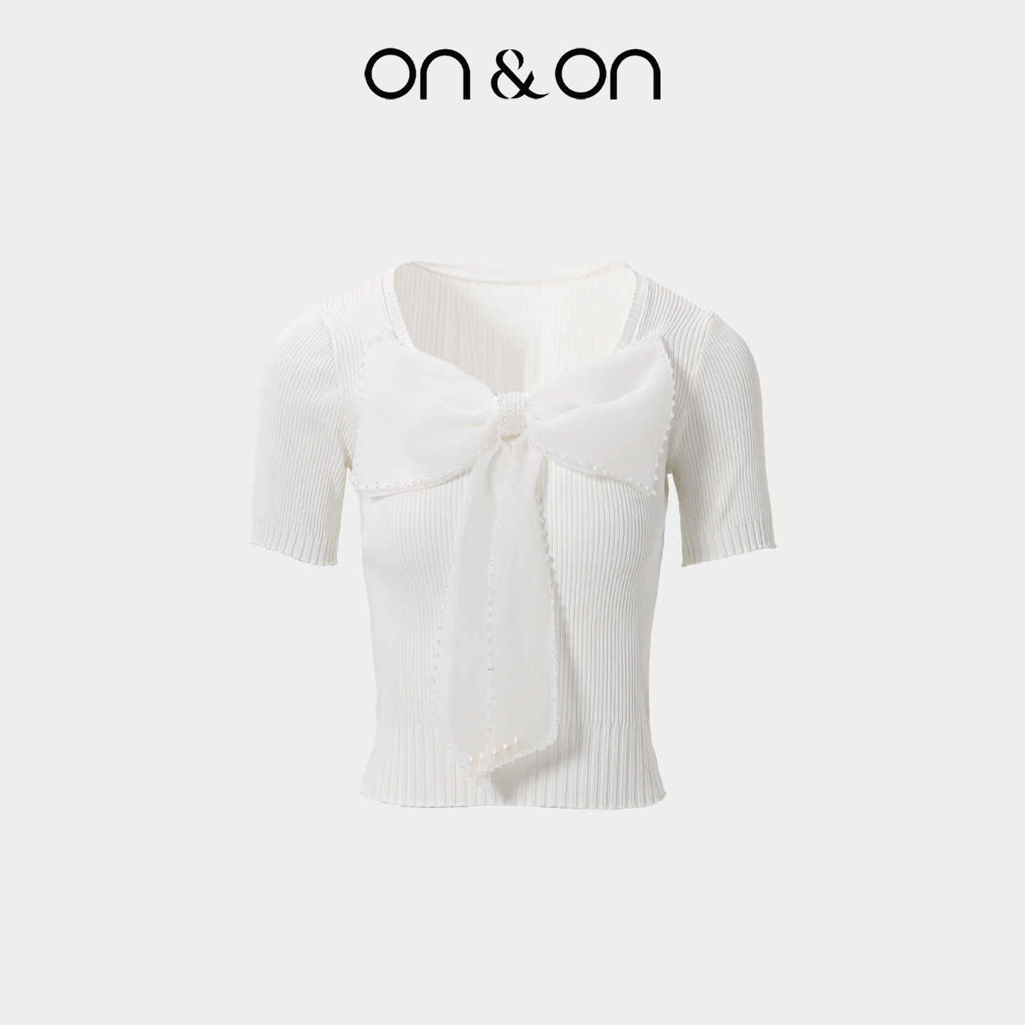 ON&ON/安乃安2025秋季新款韩系V领蝴蝶结透气甜美通勤短袖针织衫