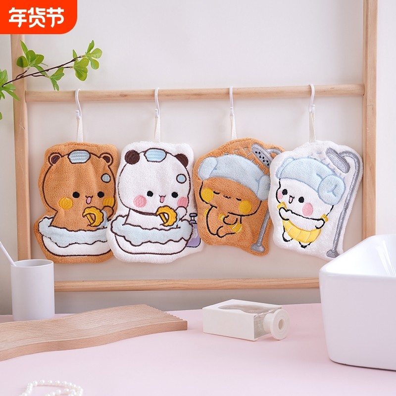 熊猫擦手巾手帕卫生间厨房擦手幼儿园洗手池毛巾加厚吸水珊瑚绒
