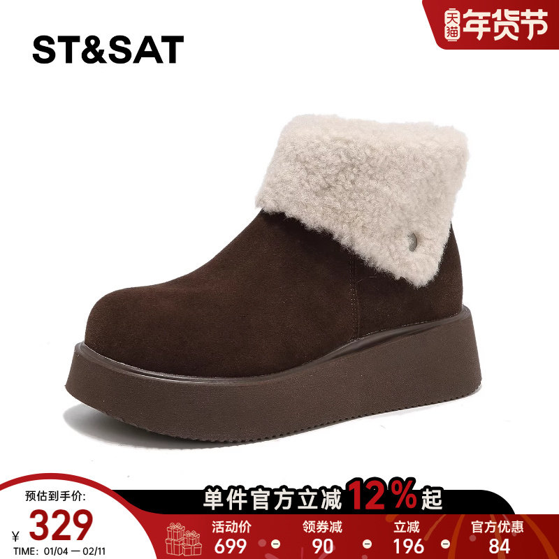 星期六厚底增高雪地靴女款2025新款冬季加绒保暖全包勃肯棉鞋