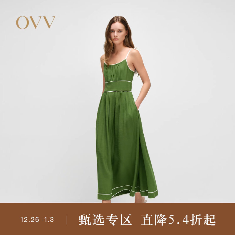 OVV2025春夏新款女装淡人醋酸仿麻面料法式浪漫吊带大裙摆连衣裙