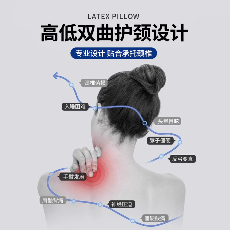 水星家纺泰国原液乳胶枕头枕芯呵护颈椎枕按摩高低枕学生宿舍枕