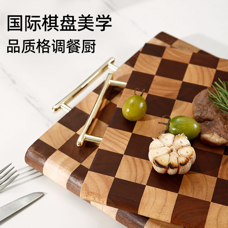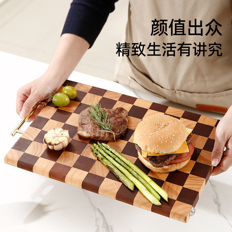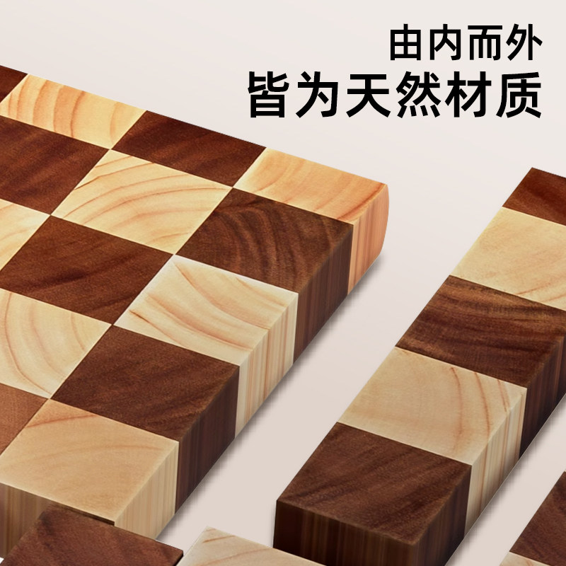 原森太棋盘格实木菜板防霉抗菌家用食品级案板厨房专用切菜板砧板