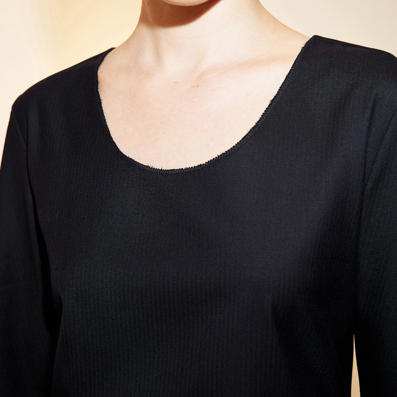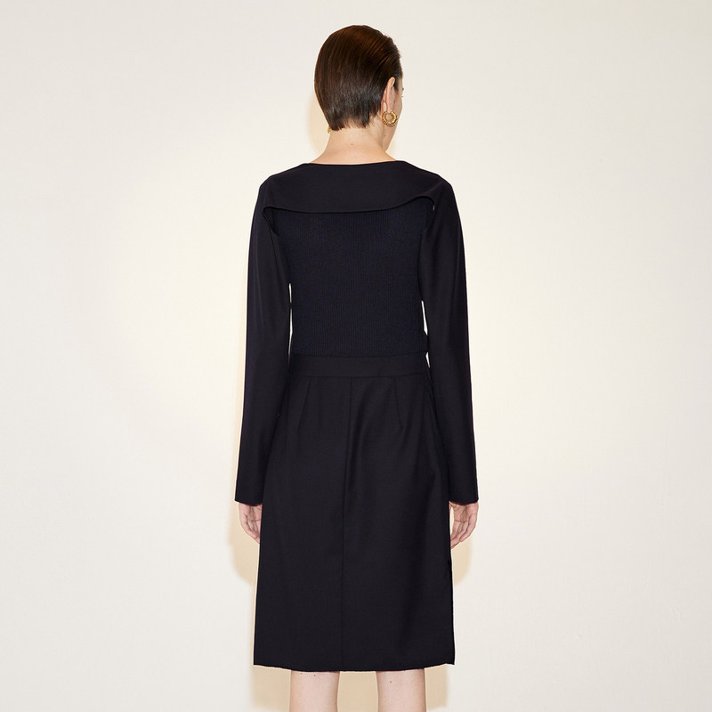 LESS春秋设计感小黑裙女赫本风拼接宽松圆领修身连衣裙2N2G11790