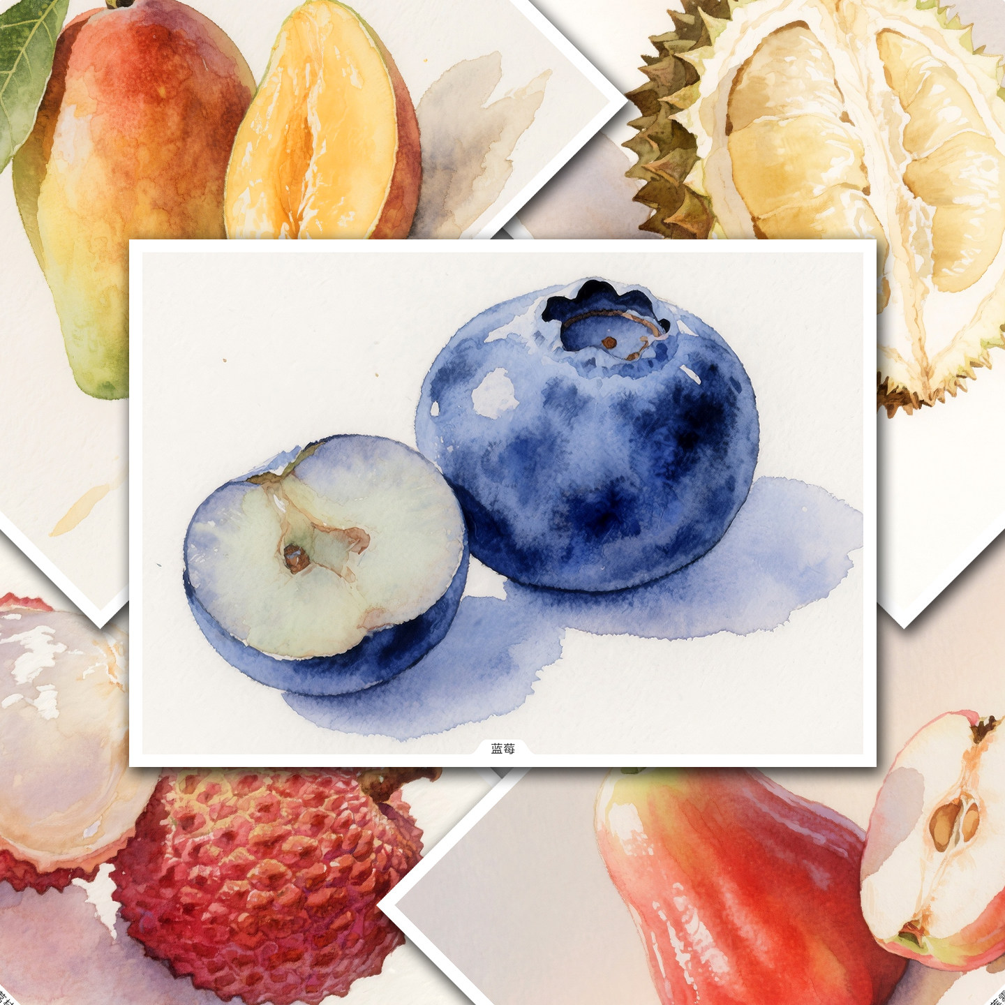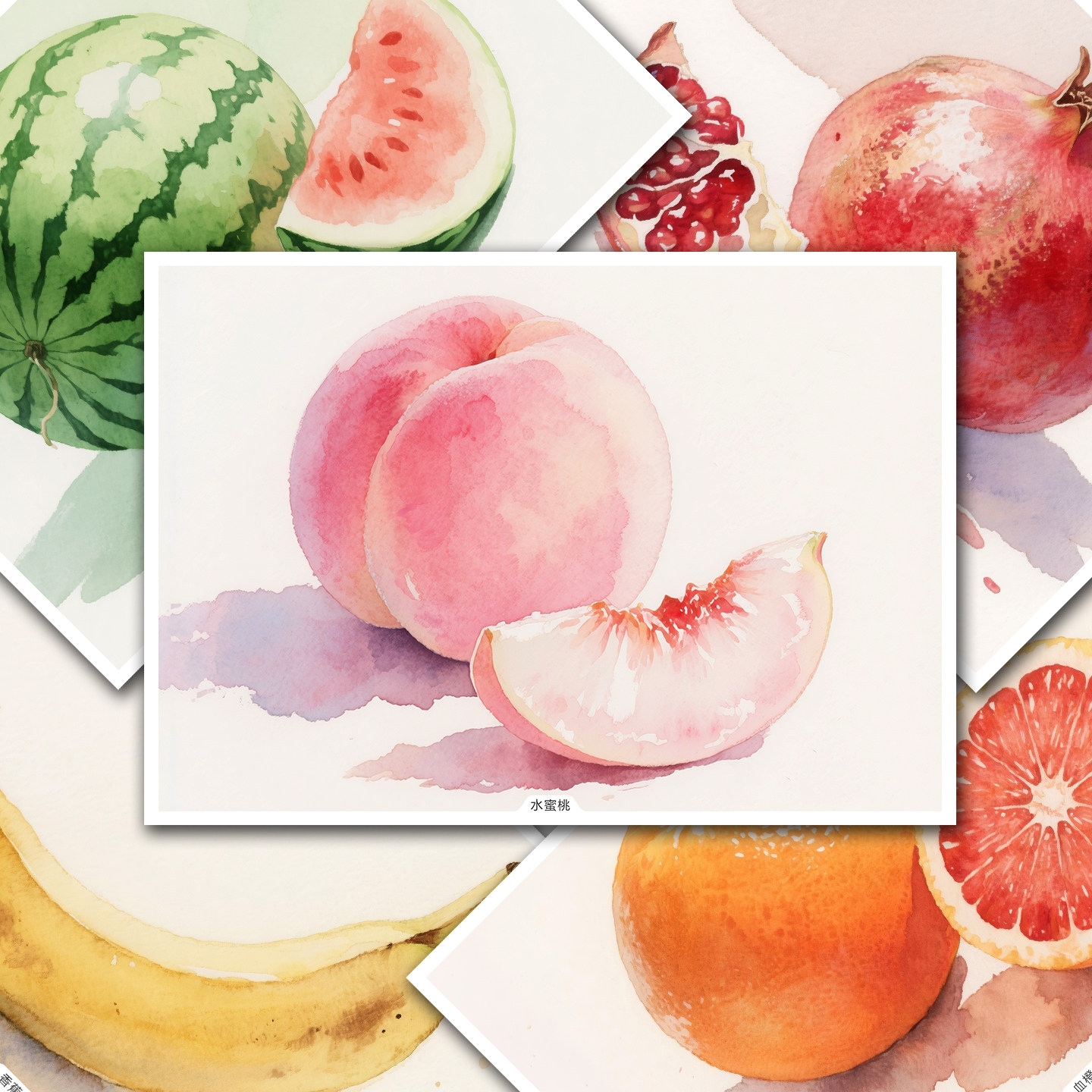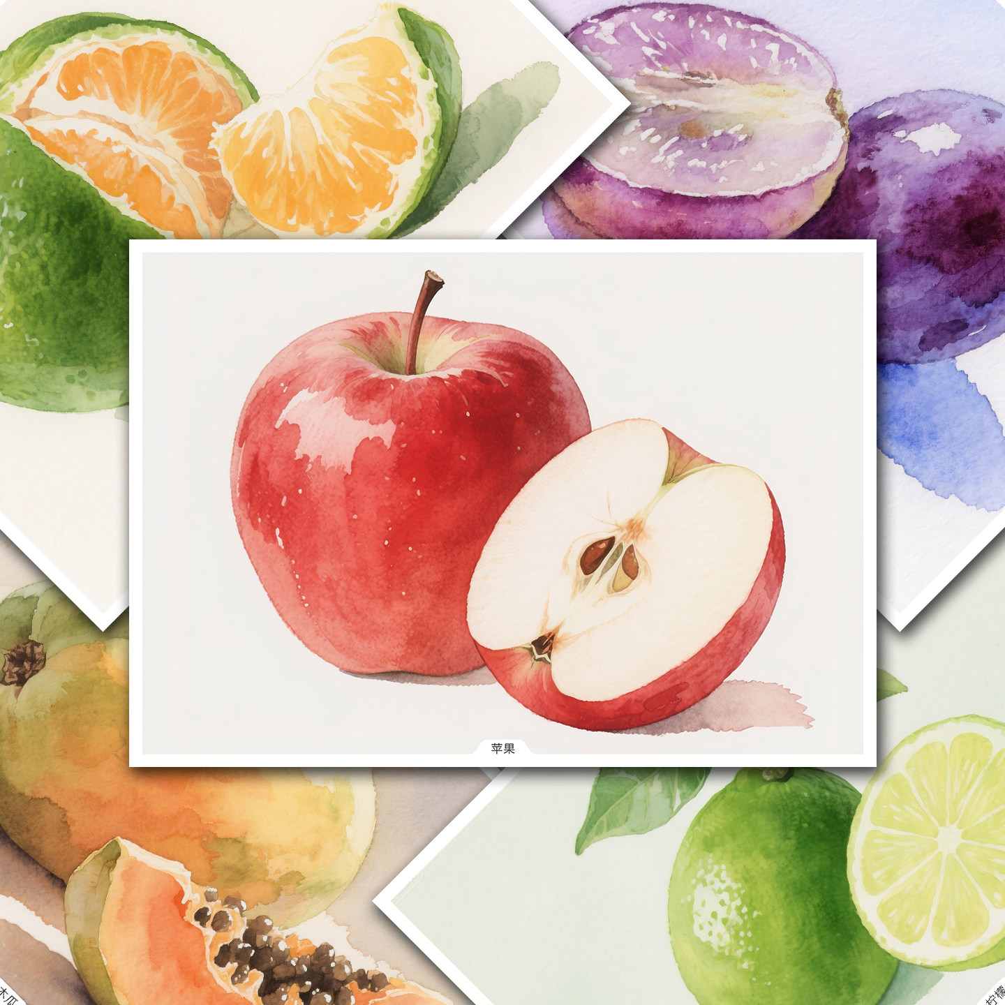 原创少儿成人美术绘画水彩水果临摹卡简单初级中级创意范画高清A5