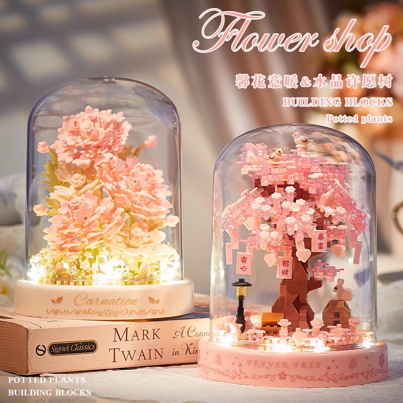 兼容乐高永生积木玫瑰花束拼装玩具樱花植物盆栽手工diy女孩礼物