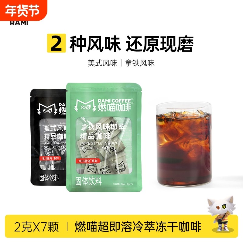 燃喵精品冷萃冻干黑咖啡美式拿铁消水健身0脂学生燃猫咖啡粉