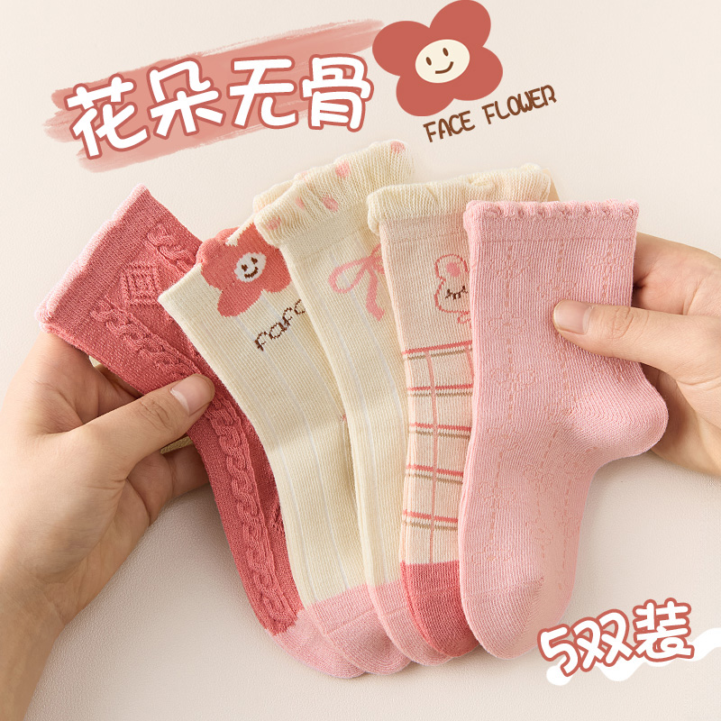 纯棉童袜春秋款夏季薄款防臭不起球男女袜子全棉中筒袜时尚儿童袜