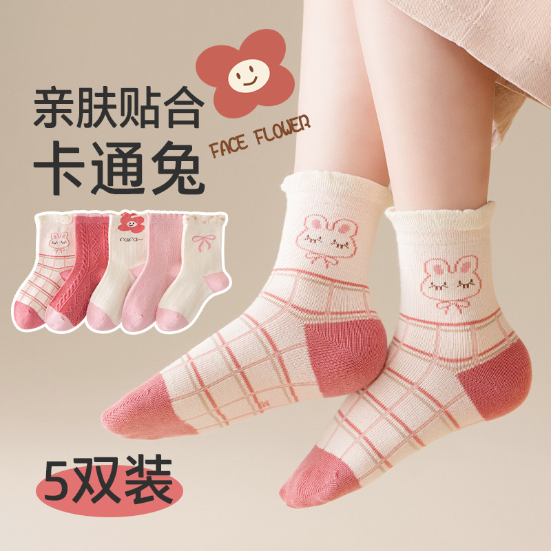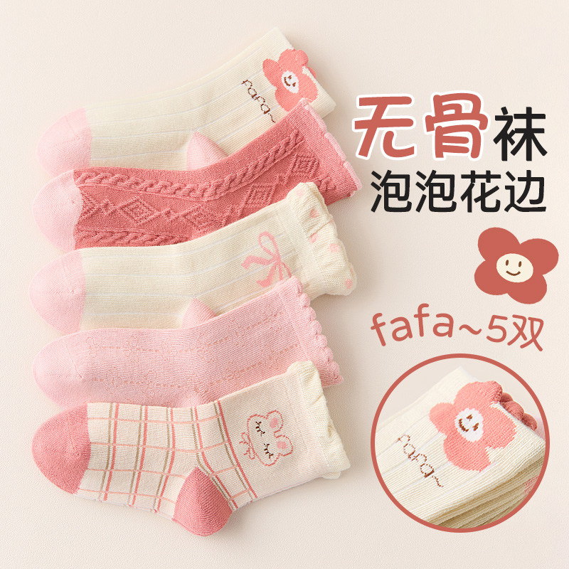 儿童袜子女宝秋冬款防臭中筒袜中大童卡通袜花边无骨棉袜保暖长袜