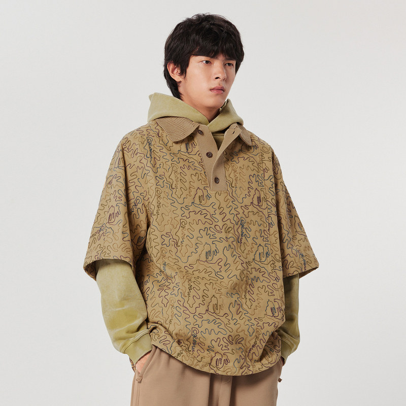 速写outlets奥莱2023春夏休闲衬衣撞色复古潮短袖衬衫休闲衬衣潮