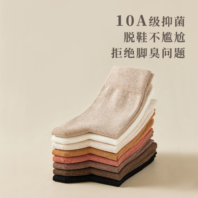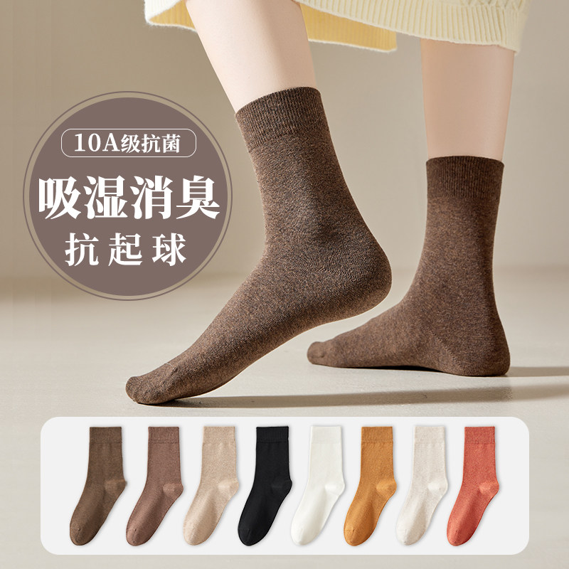 袜子女款纯棉中筒袜秋冬季抗菌防臭吸汗运动棉袜春秋款无骨短筒袜