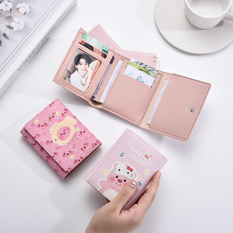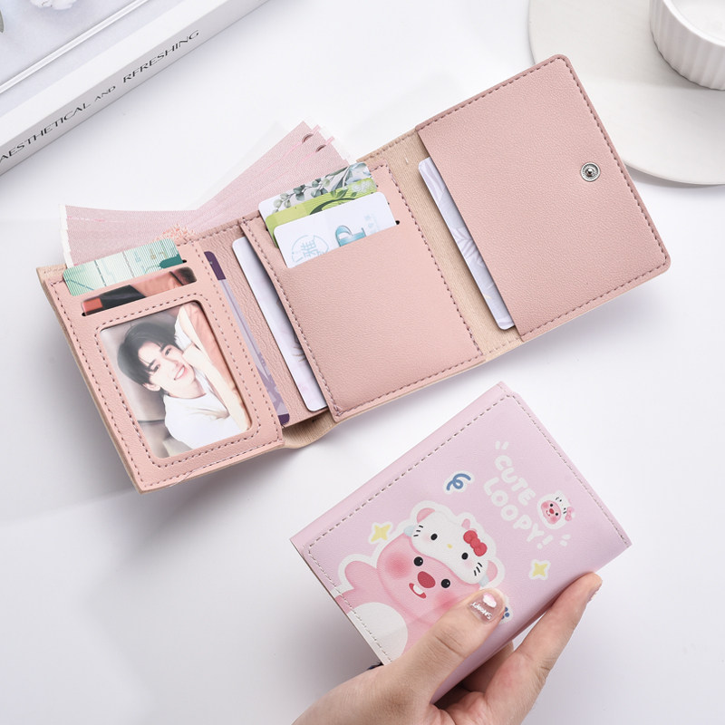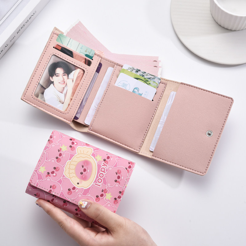 卡通可爱露比折叠三折钱包个性多功能零钱包皮夹一体卡包证件小巧