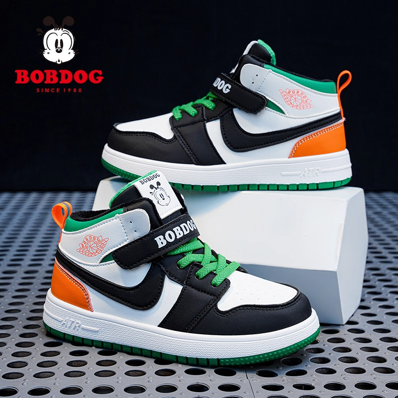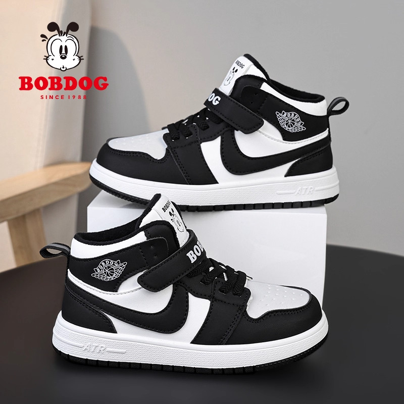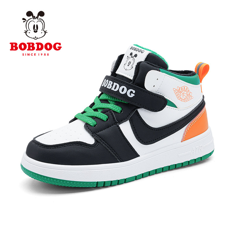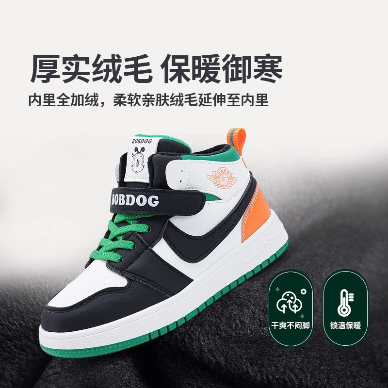 巴布豆男童鞋子2025秋冬季新款皮面加绒二棉女童鞋儿童运动鞋高帮