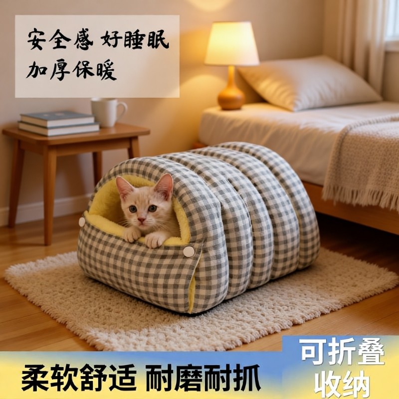 猫窝冬季保睡袋可拆洗封闭式安全感猫咪被窝深度睡眠宠物垫子