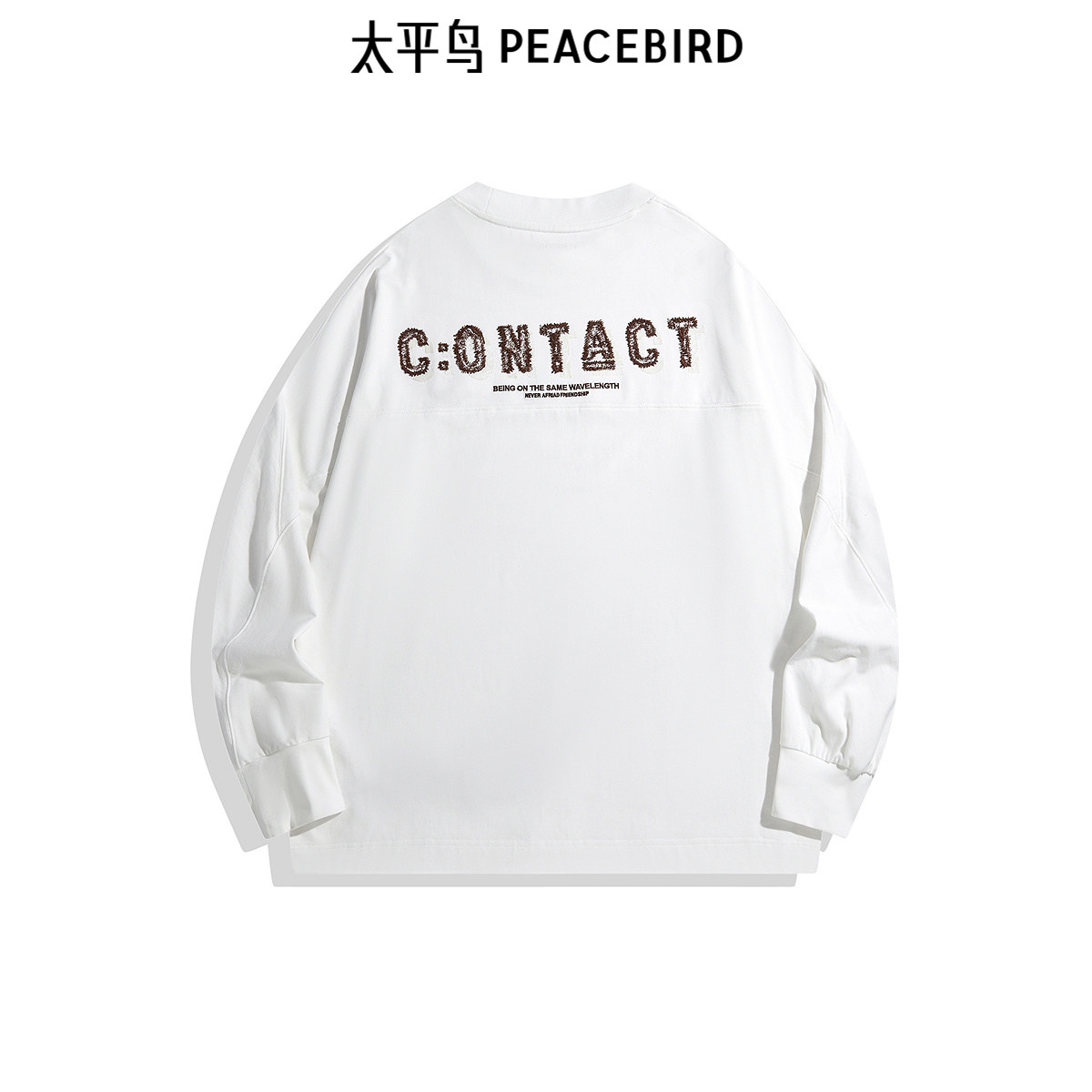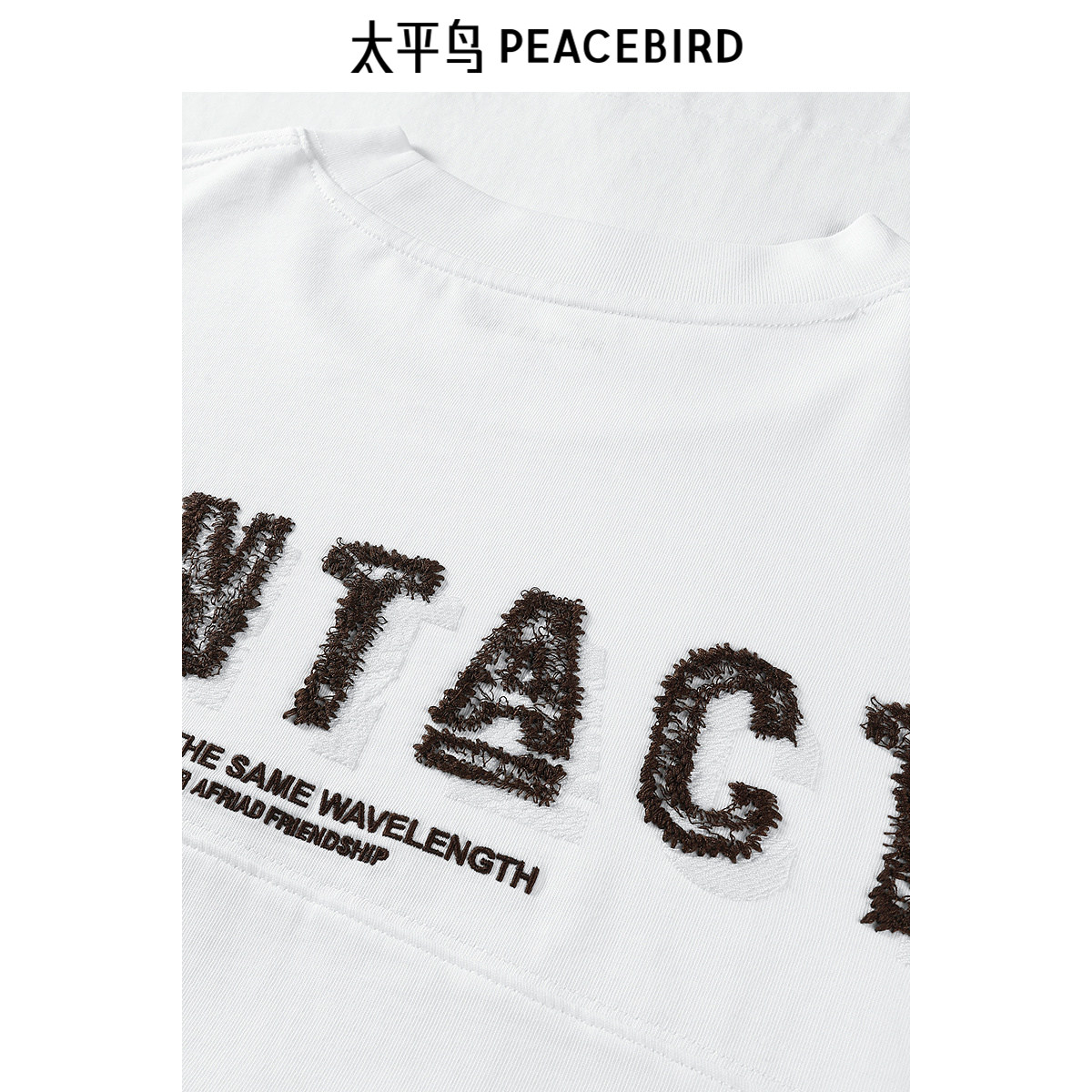 太平鸟男装 休闲立体刺绣长袖T恤潮流潮牌重磅男士体恤衫