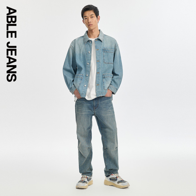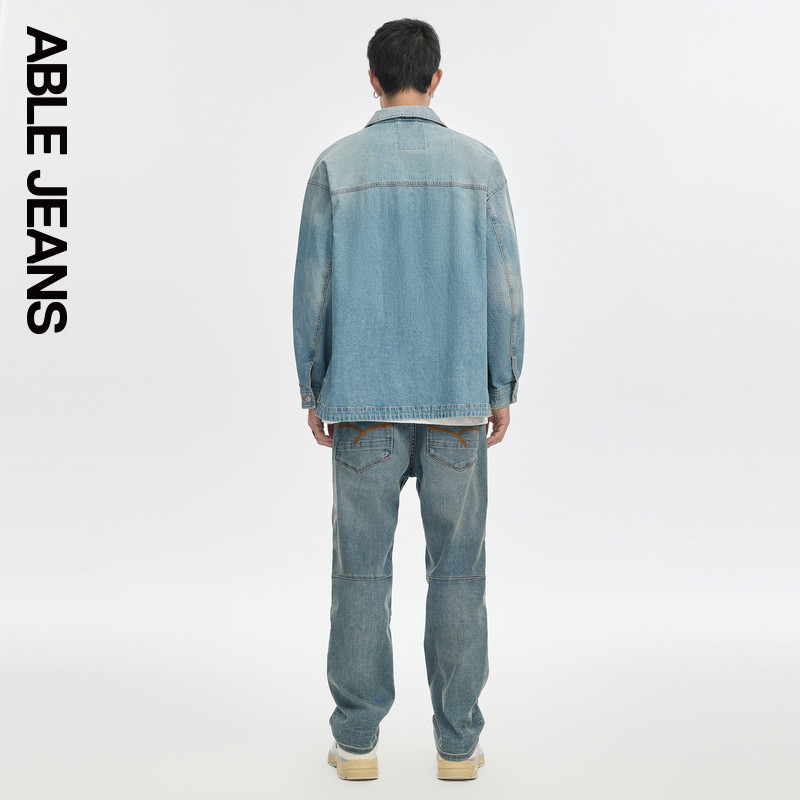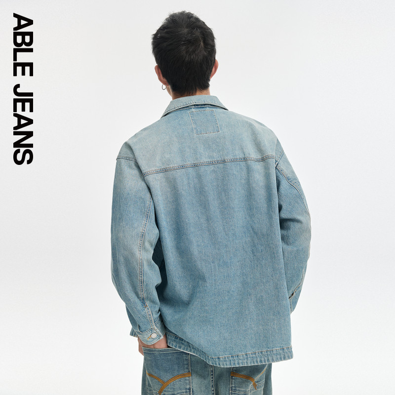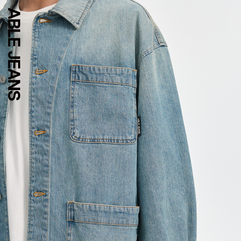 ABLE JEANS 春秋新款男士复古水洗工装牛仔夹克休闲衬衫外套