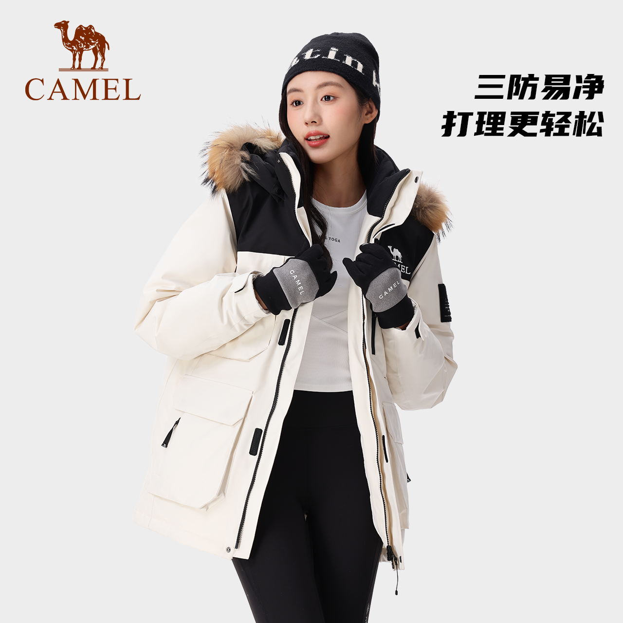 骆驼女装工装派克羽绒服2025冬季新款加厚保暖貉子毛领羽绒外套