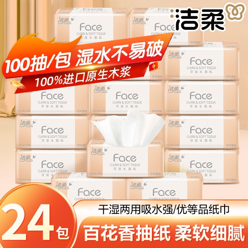 洁柔百花香抽纸巾家用实惠装大包纸抽整箱餐巾纸面巾纸卫生纸香味