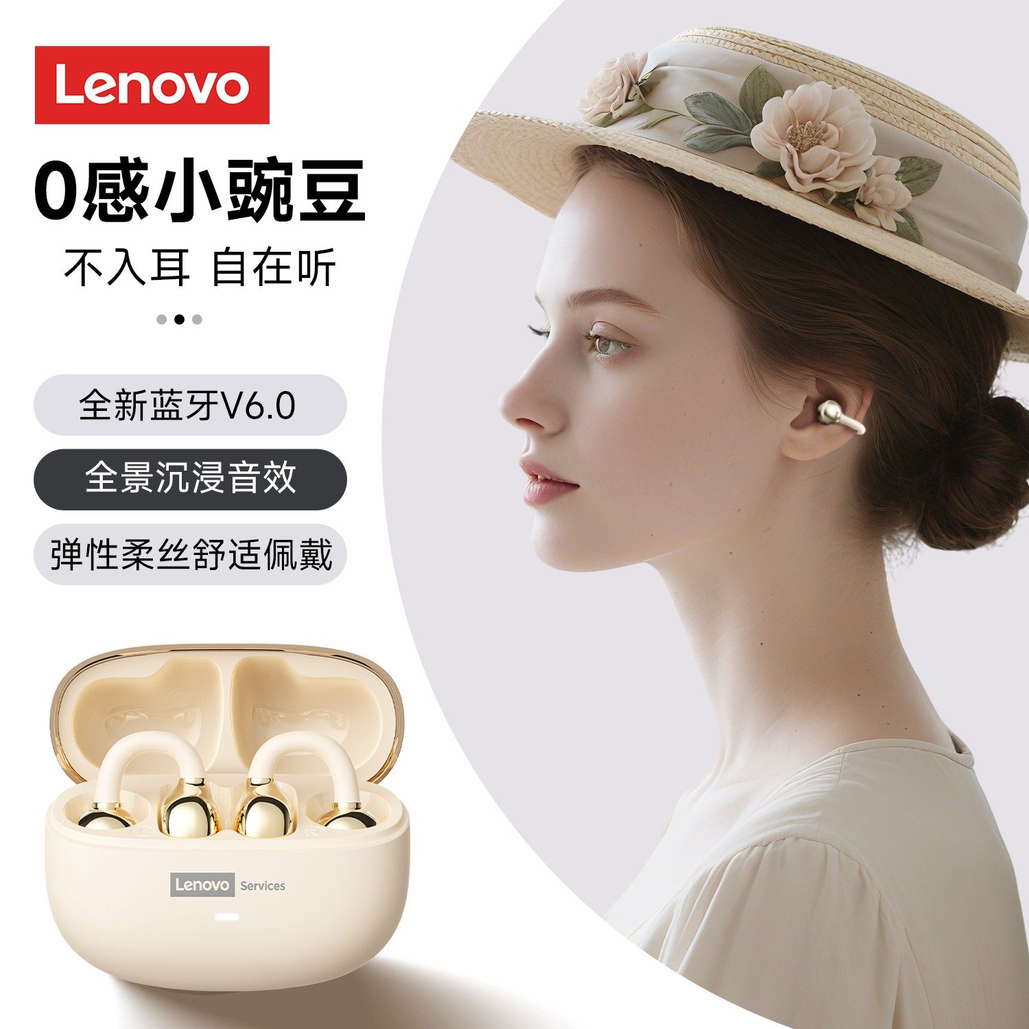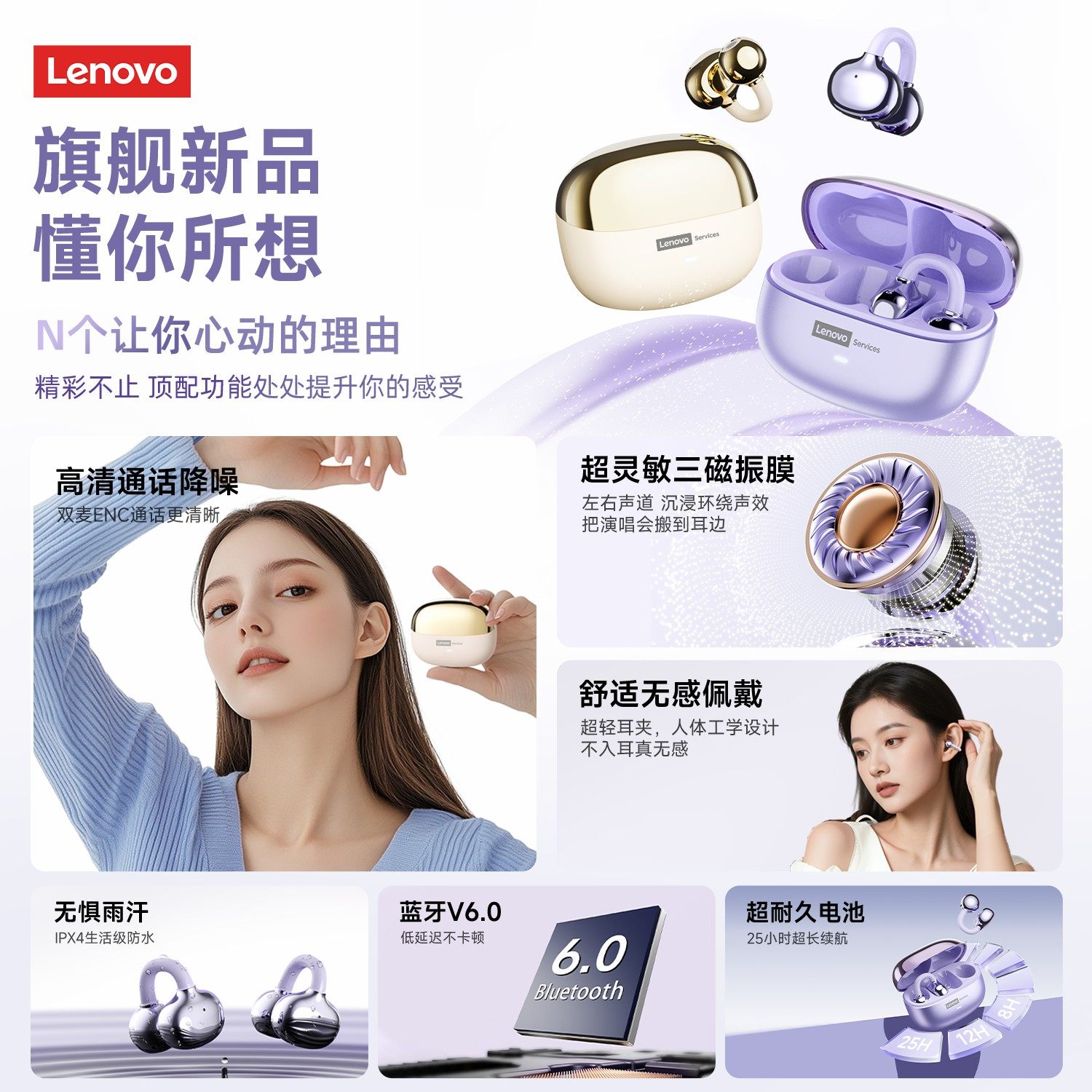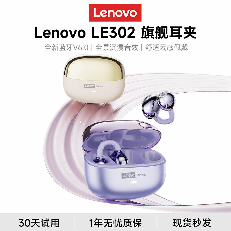 联想LE302蓝牙耳机无线耳夹式骨传导运动跑步降噪不入耳2025新款
