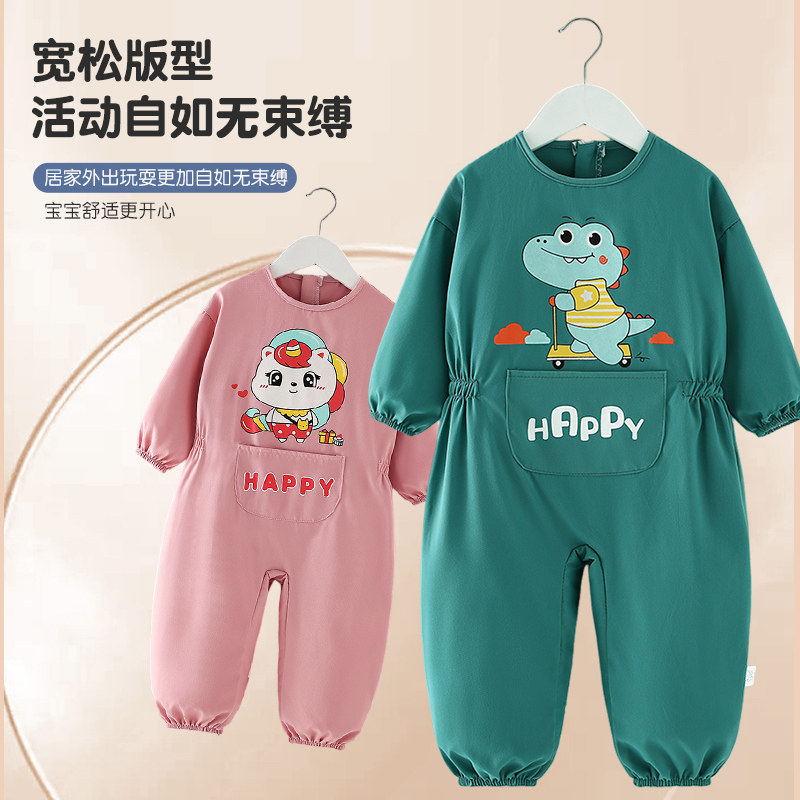 婴儿连体爬爬服宝宝罩衣全身护衣防脏外穿儿童户外学爬行衣服冬季