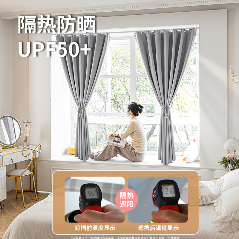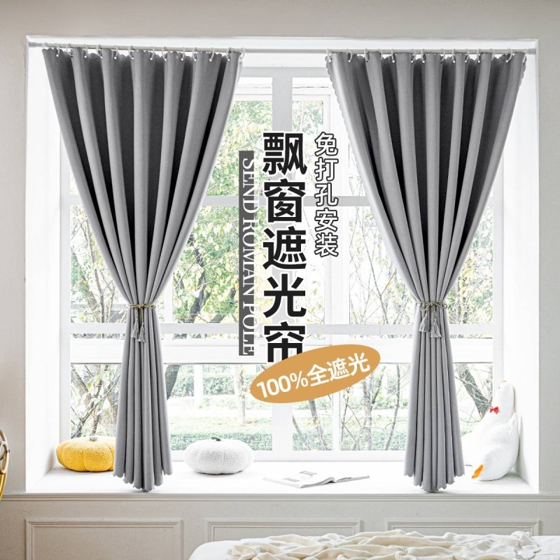 高密梭织成品遮光帘飘窗阳台轻奢纯色免打孔隔热帘客厅隔断2025新