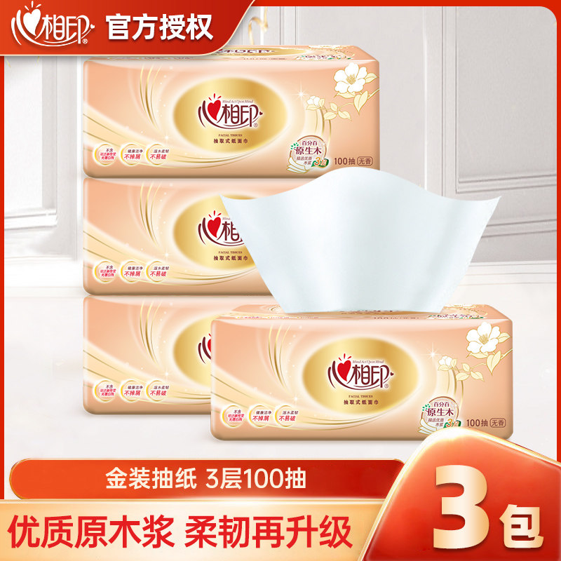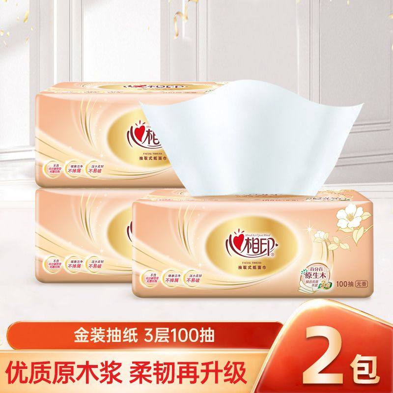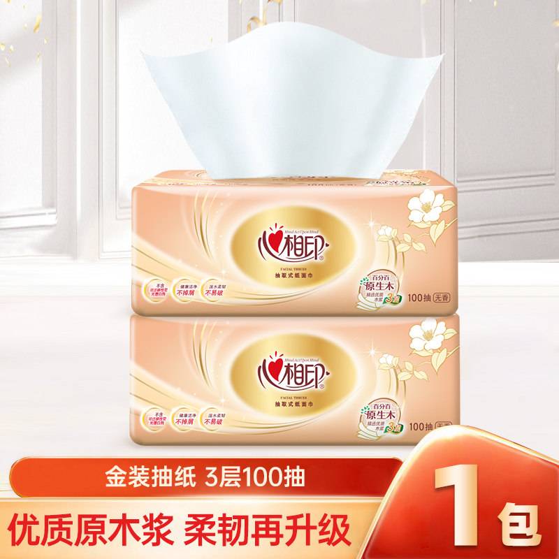 心相印金装经典抽纸餐巾纸学生擦手纸家用面巾纸100抽厕纸实惠装