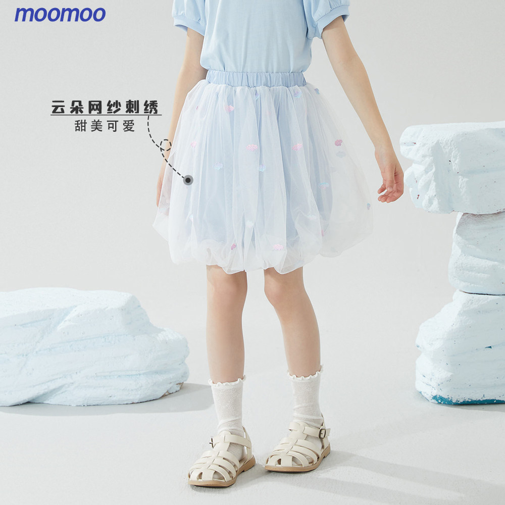 美特斯邦威童装女童半裙夏季云朵花苞裙摆泡泡梭织裙子