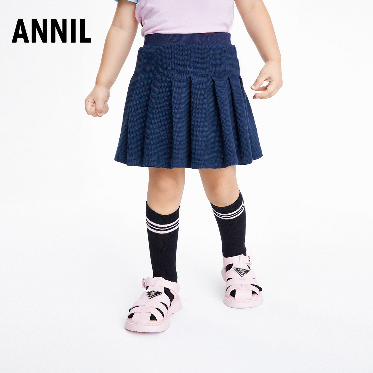 安奈儿童装女童针织半身裙秋秋秋洋气1-3岁宝宝百褶裙子