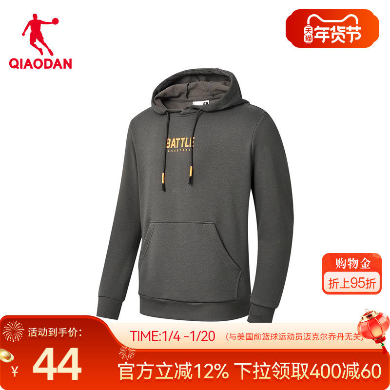 中国乔丹卫衣男2026春季新款保暖运动黑色休闲男士连帽套头衫