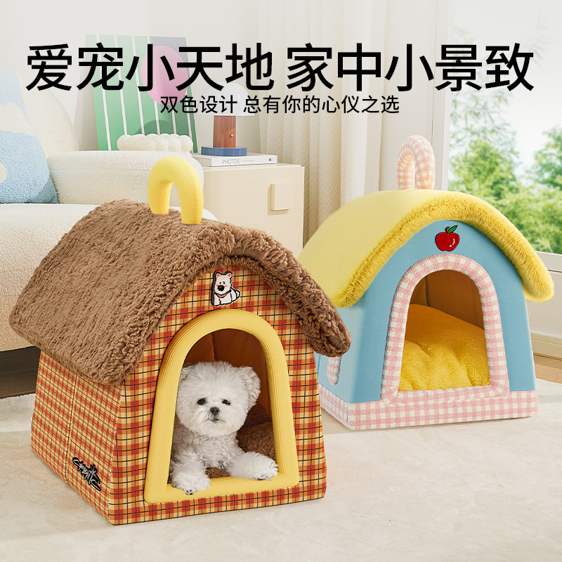 狗窝别墅半封闭房子冬天保暖宠物猫屋帐篷可拆洗室内小型犬防风