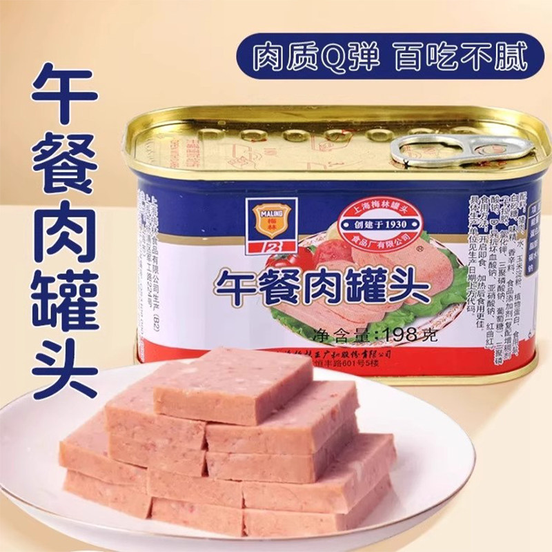 上海梅林午餐肉罐头198g*1罐三明治泡面搭档速食储备食品猪肉经典