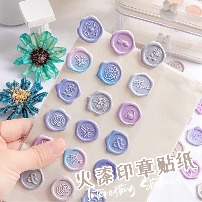 马卡龙火漆印章贴纸高颜值浮雕立体卡通女孩咕卡装饰贴画水晶ins风DIY小图案自粘手帐素材礼物贺卡信封口贴