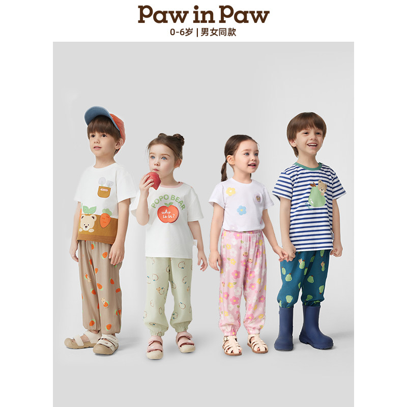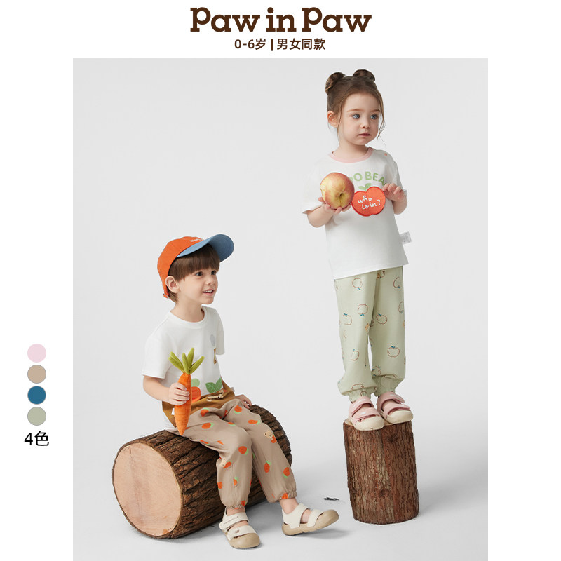 PawinPaw卡通小熊童装25年春夏新款男女宝宝水果满印休闲裤防蚊裤