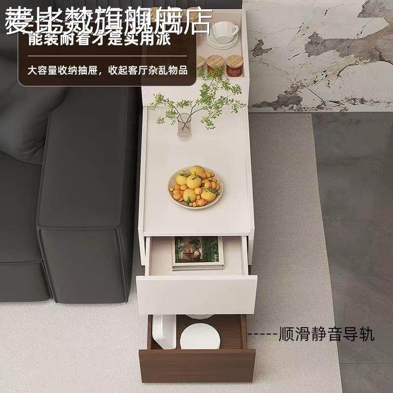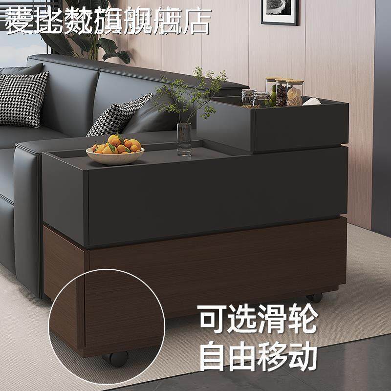 麦比梵沙发边柜意式极简实木沙发边侧柜家用长方型边柜带滑轮可移动边几床笠拉车