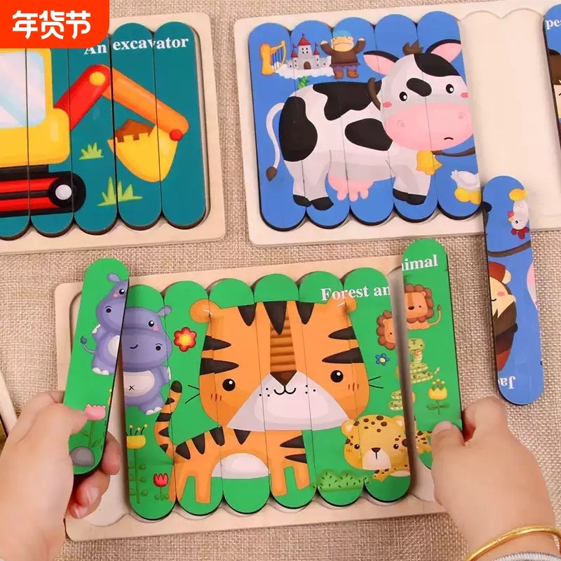 创意木条拼图幼儿园益智区域投放材料小班中儿童活动语言区角玩具
