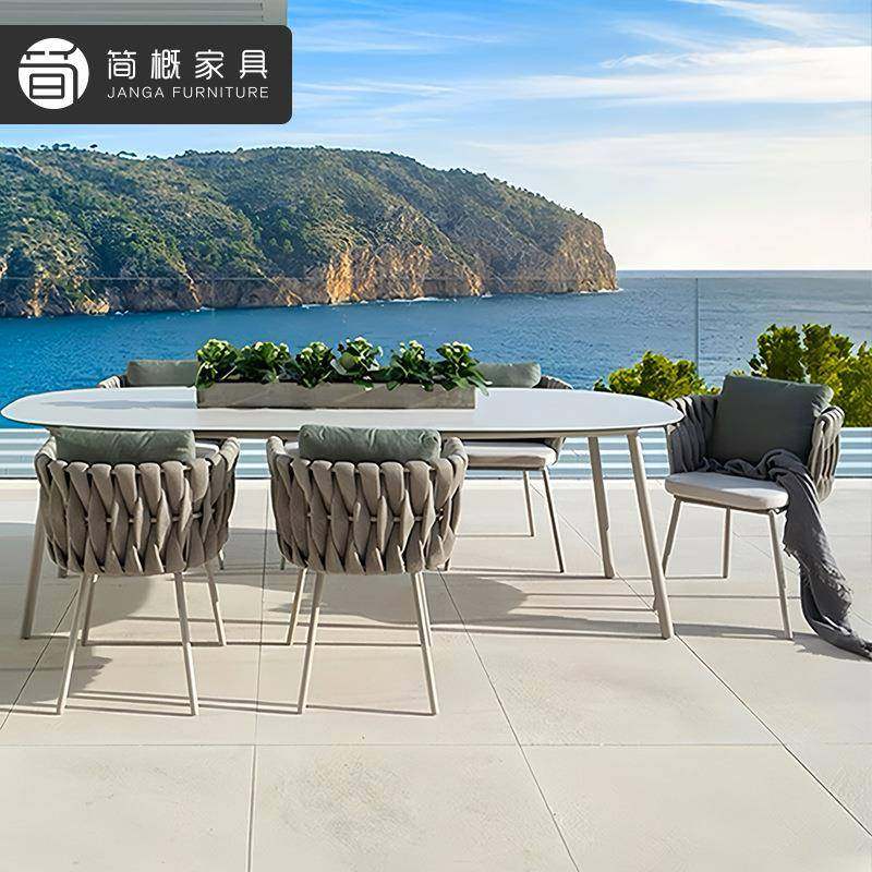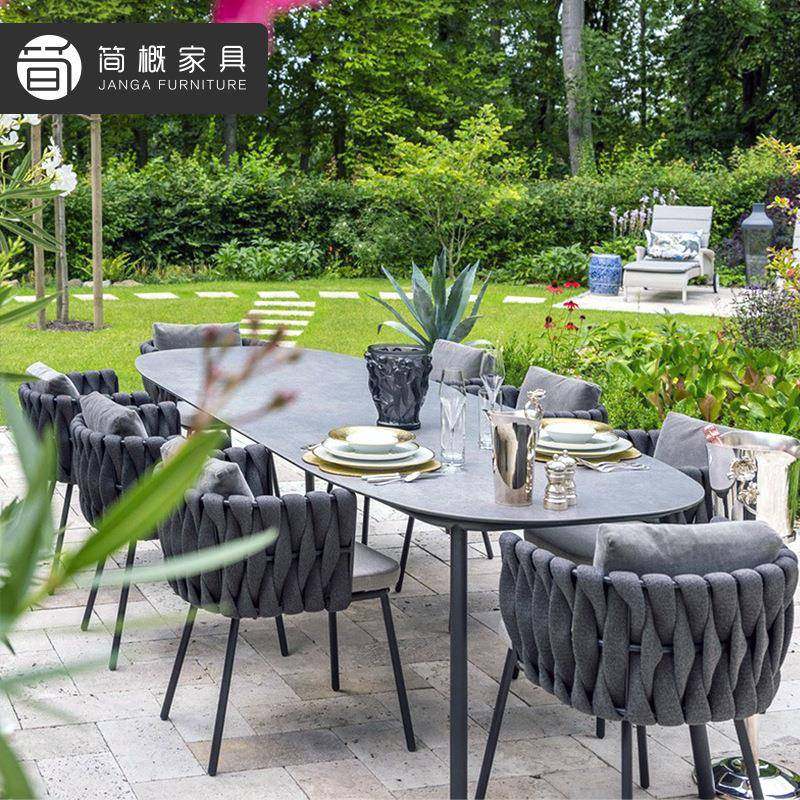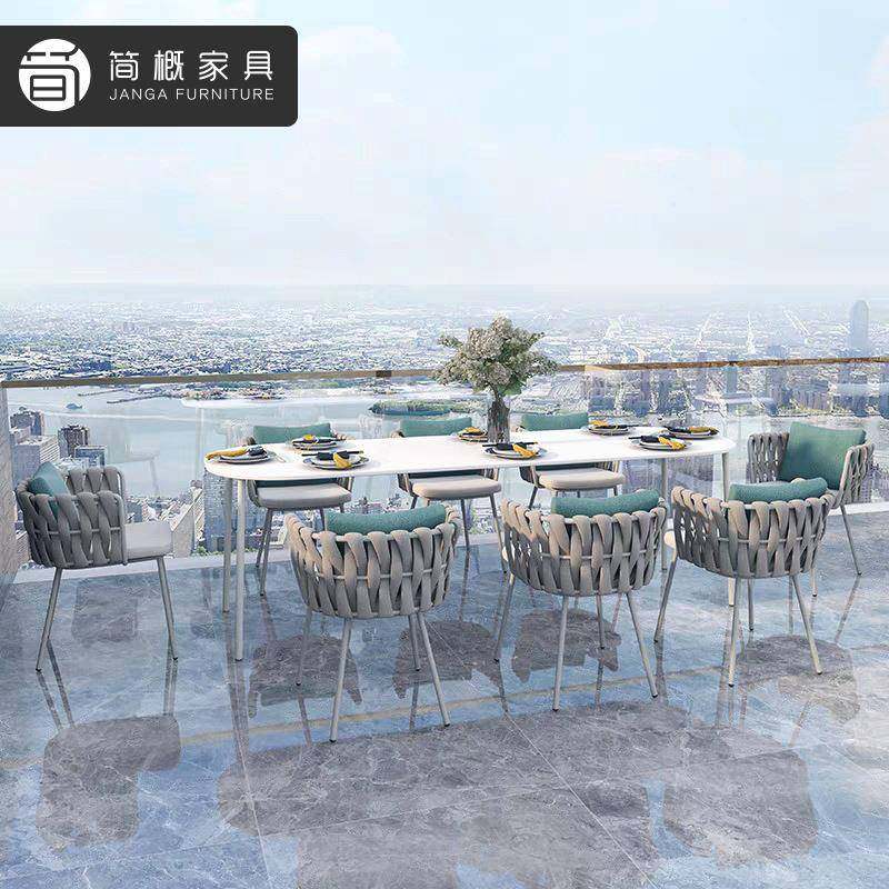 户外庭院桌椅露天餐厅岩板餐桌椅花园阳台休闲藤椅高端露台家具