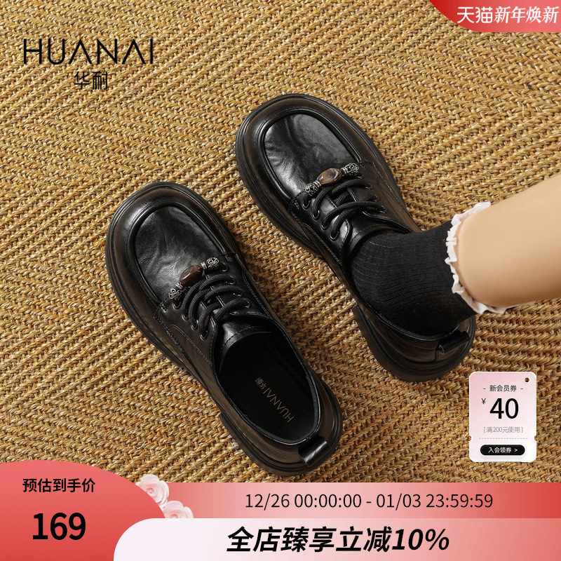 华耐粗跟乐福鞋女2025秋季新款气质英伦风配裙子通勤鞋百搭JK单鞋