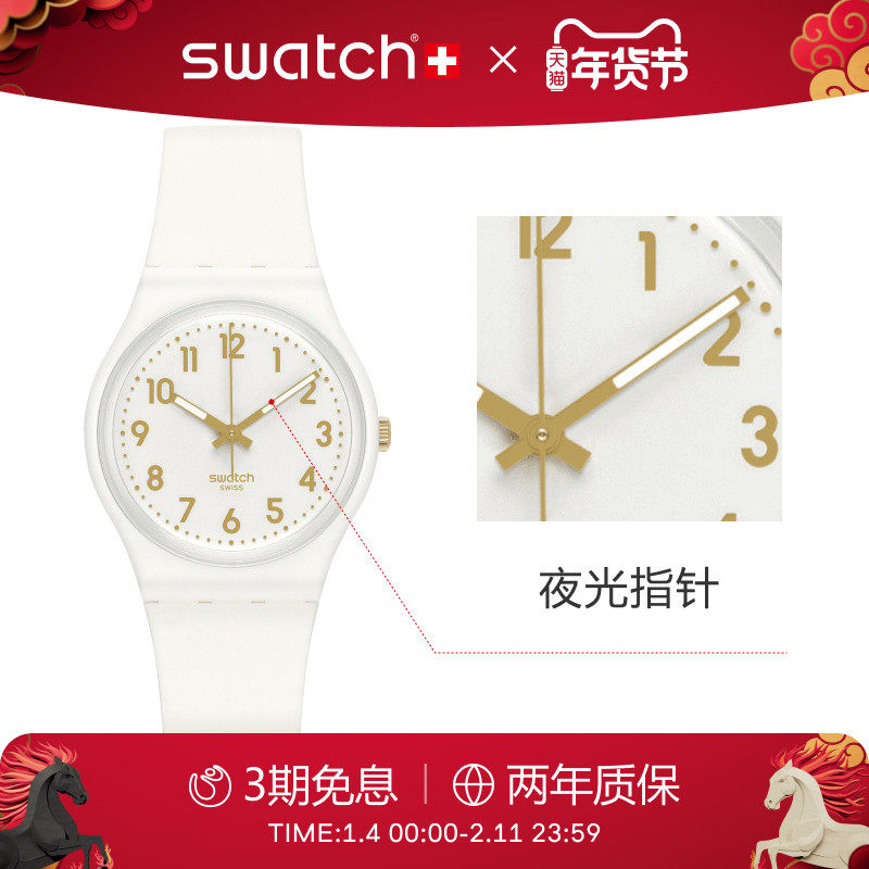 Swatch斯沃琪瑞士手表经典简约白色初高中学生腕表考试新年礼物