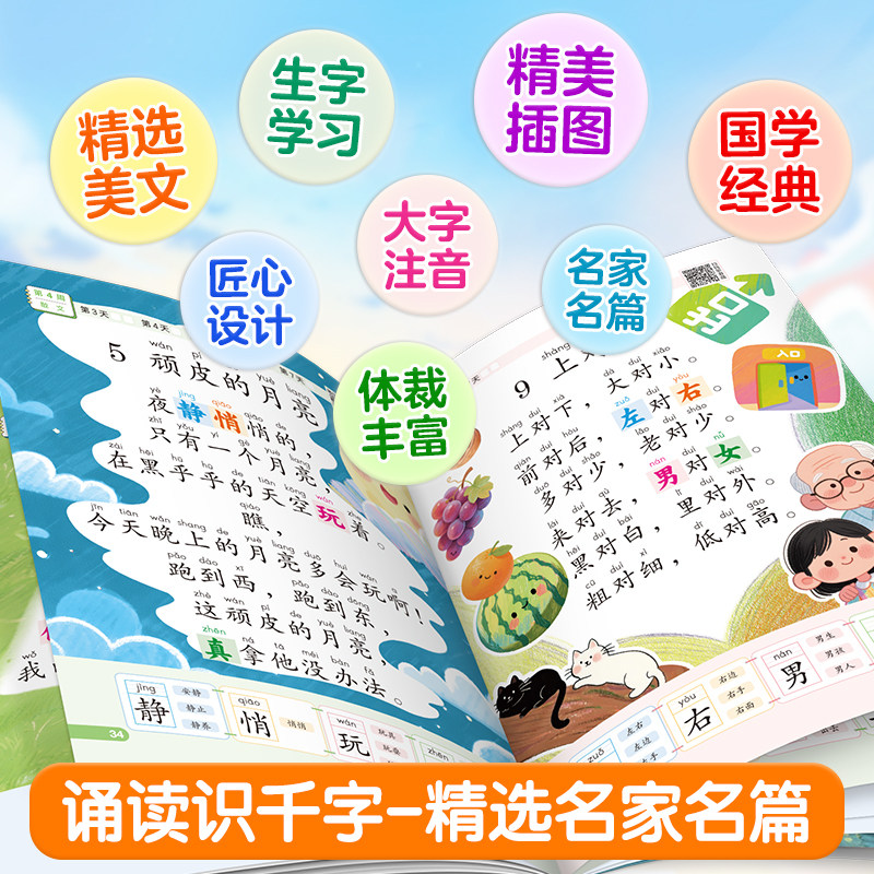 诵读识千字 幼小衔接启蒙一年级儿童识字学霸养成记课外读物幼儿启蒙早教书识字书幼儿认字一年级课外书汉字速记积累大全训练书籍