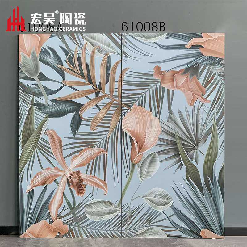 莫兰迪植物花片600x1200复古浴室卫生间背景墙砖仿古瓷砖仿古砖