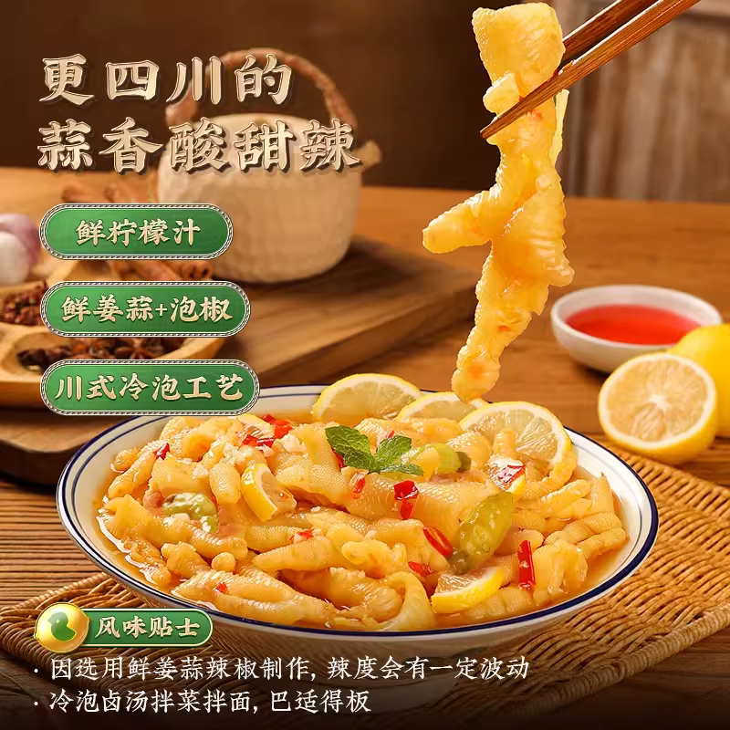 王小卤无骨鸡爪柠檬酸辣蒜香下酒菜脱去骨凤爪追剧小零食休闲小吃