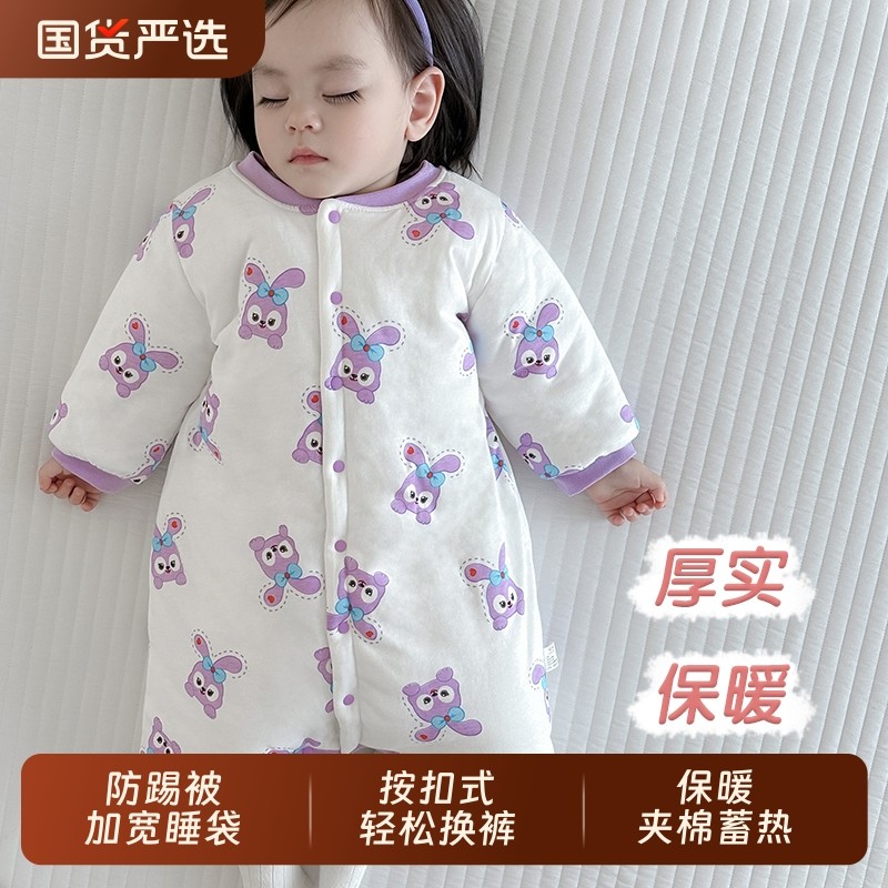 哇哇婴儿睡袍冬季夹棉睡袋小月龄宝宝防踢被秋冬款加厚睡衣保暖