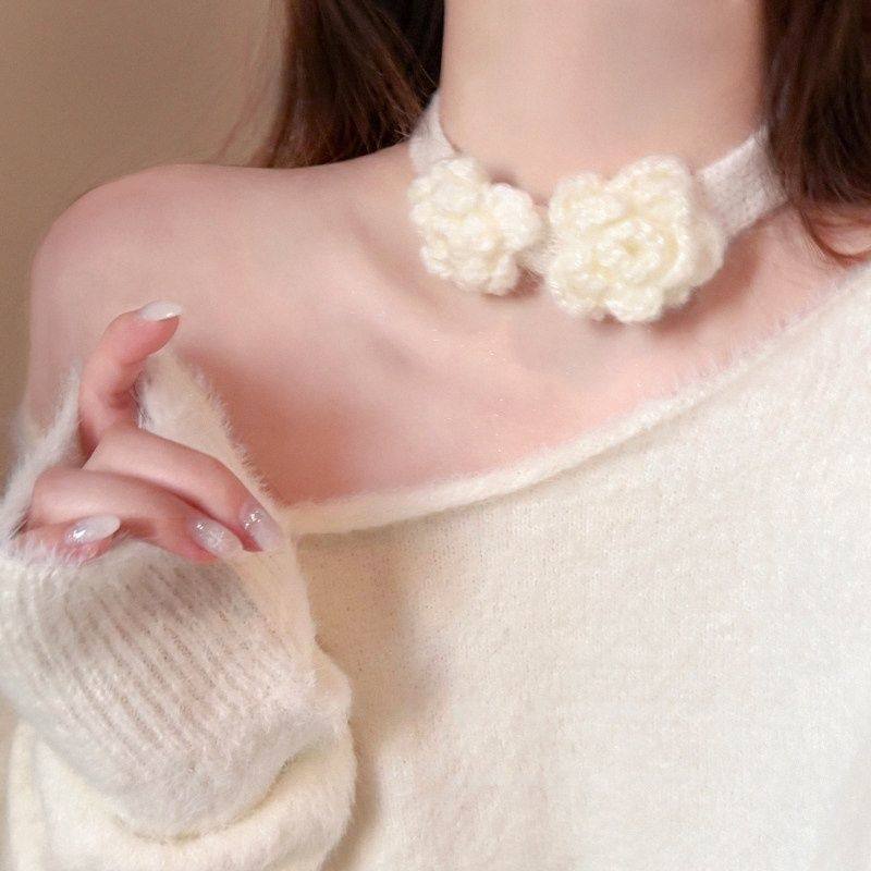 秋冬氛围感针织花朵颈链女高级感温柔气质小众毛衣链百搭项链配饰