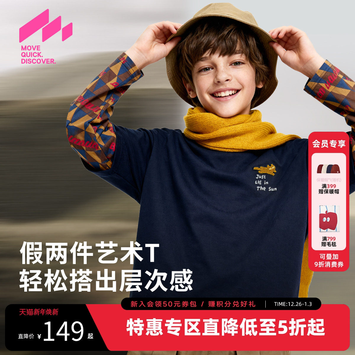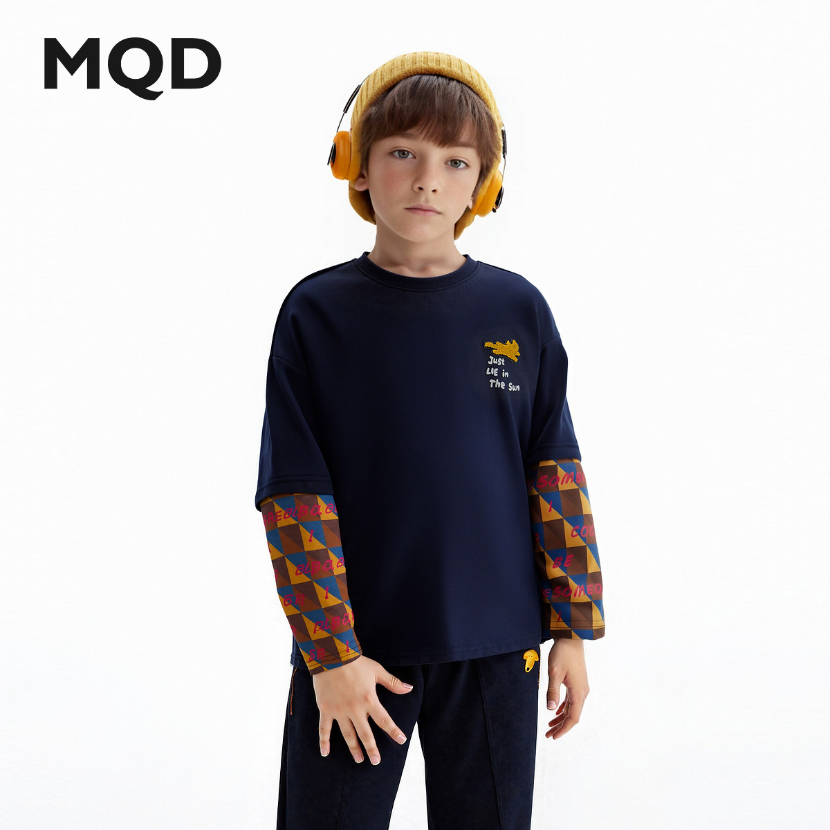 【设计师系列】MQD童装男童长袖T恤2025秋季新款儿童满版拼接上衣