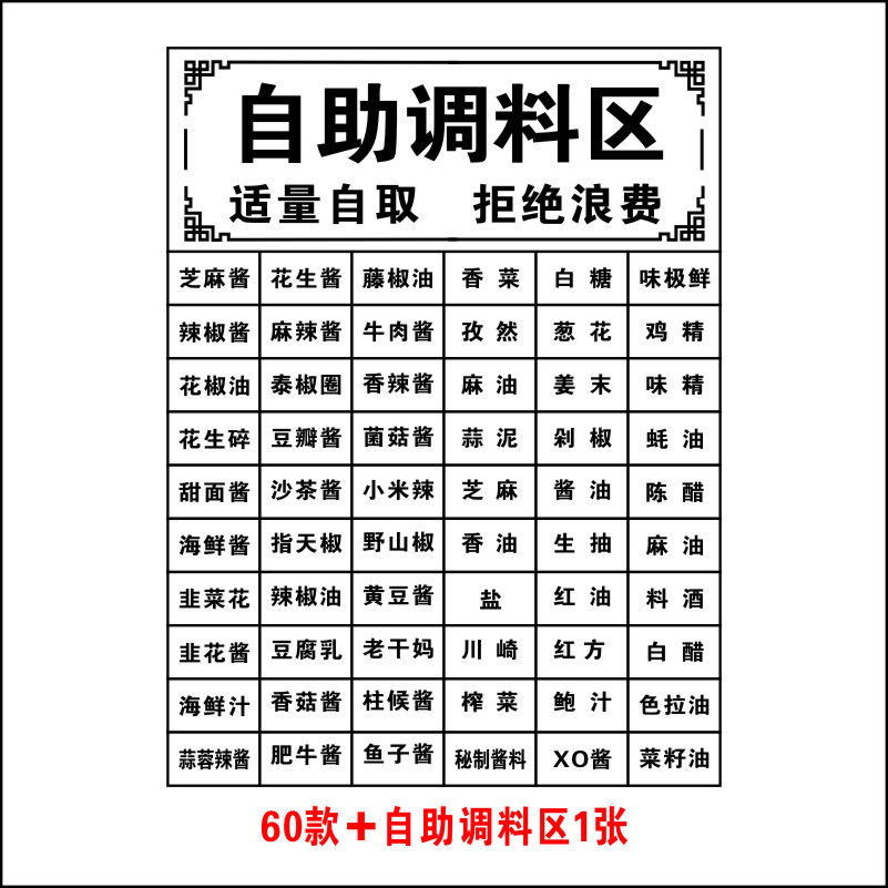 调料贴纸火锅蘸料名称贴自助餐厅酒店厨房佐料贴瓶罐分类标签贴纸